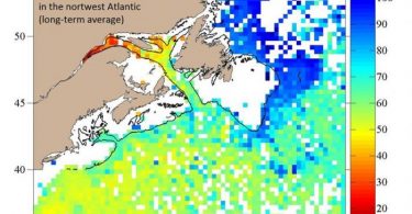Il explique que les eaux très profondes du chenal perdent leur oxygène sous l’effet du réchauffement que provoquent les changements d’interaction entre le courant chaud du Gulf Stream et le courant froid du Labrador :